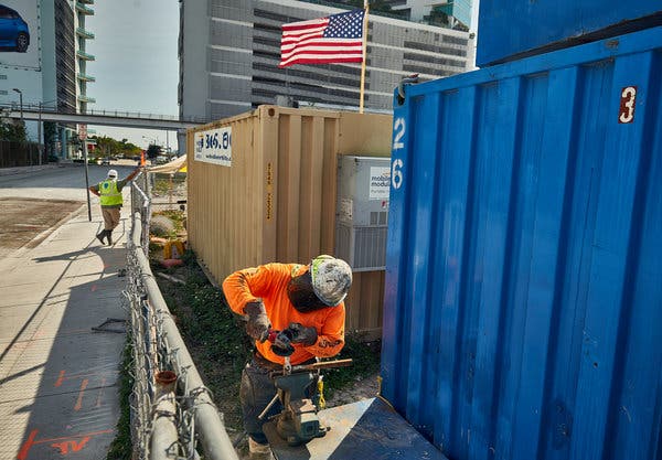 A worker on the site of the Miami Worldcenter. CreditOscar Hidalgo for The New York Times
