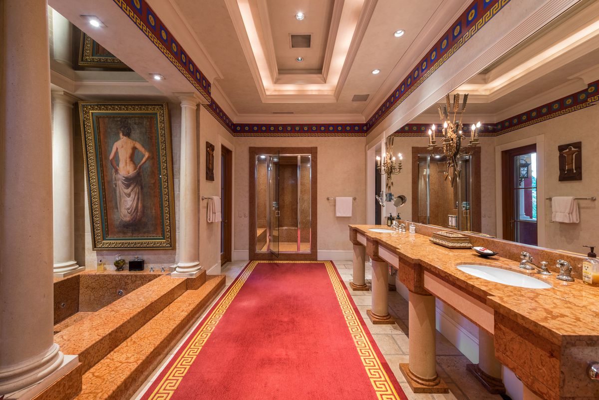 Inside the estate, which was once Kramer’s home base for hosting notorious parties, buyers will find 17,000 square feet of living space with 13 bedrooms and 12 bathrooms. There’s a 10,000-bottle wine cellar, a pool and spa, gym, multiple guest houses, and enough garages to park up to 14 cars.
