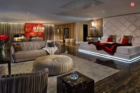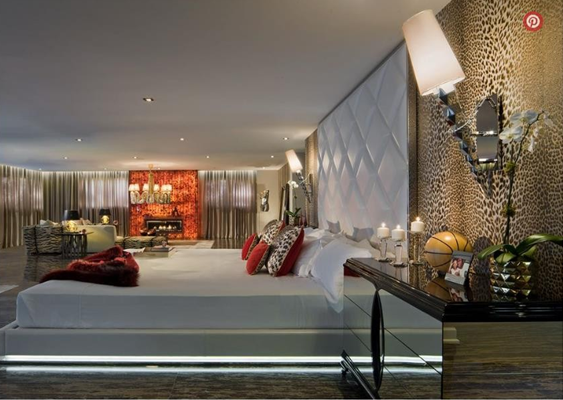 one of the main living areas. There’s also leopard-print walls in the 3,500-square-foot